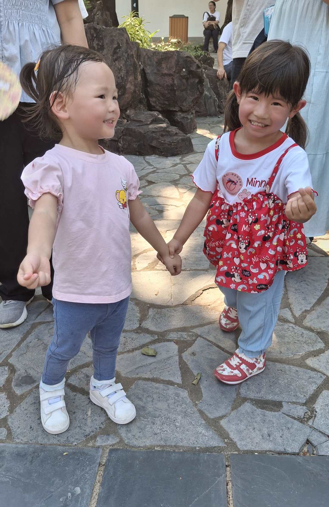 兩位小朋友手拖手一齊旅行合照